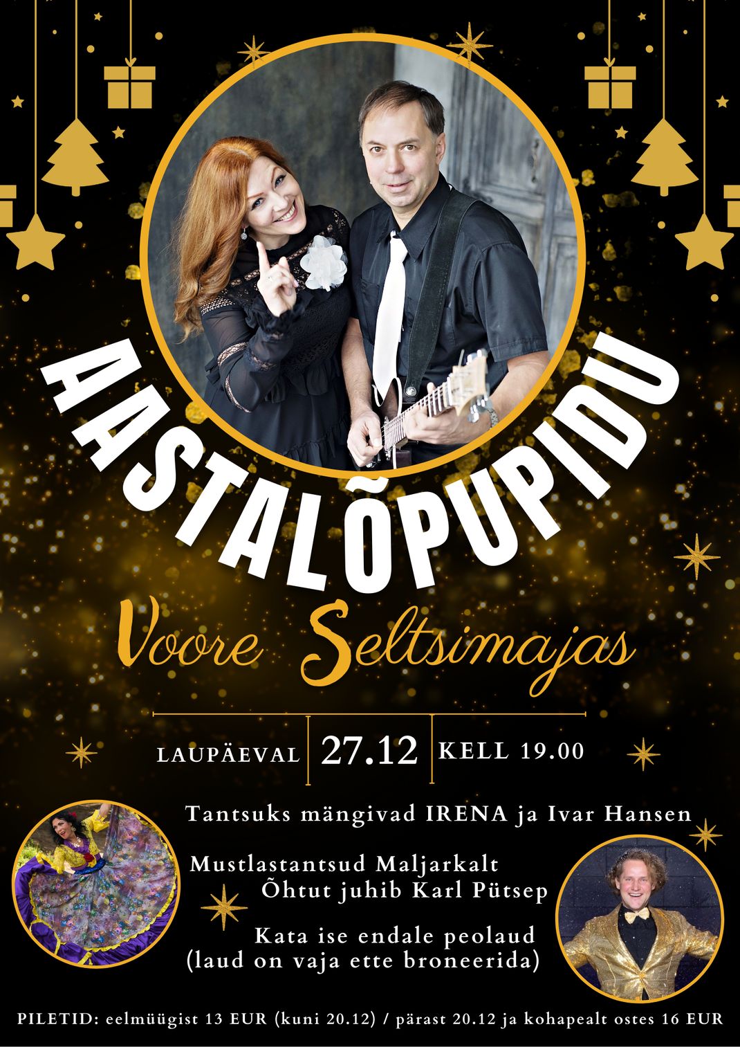 Osalejad saavad ise katta endale meelepärase peolauda, kuid laua broneerimine on vaja seltsimajaga eelnevalt kokku leppida ([email protected], tel 5029724). Pilet eelmüügist kuni 20. detsembrini 13 eurot. Eelmüük läbi Fienta. Pilet pärast 20. detsembrit ja kohapealt ostes 16 eurot.