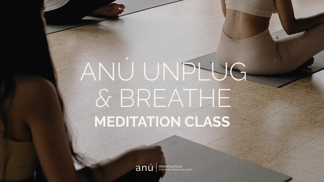 Anú Unplug & Breathe is a meditation class designed to help you pause, ground, and return to yourself. Through guided silence and presence, you'll experience the nourishment of simply being — no labels, no pressure, just space to breathe.