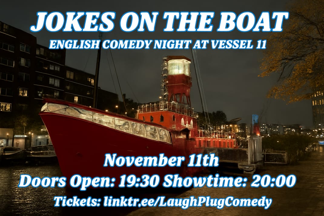 LaughPlug Comedy is bringing a fresh Stand Up Comedy Show at Vessel 11, the beautiful red boat in Wijnhaven.