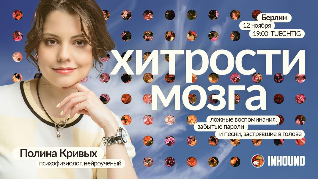 About the speaker: Polina Krivykh is a psychophysiologist and neuroscientist, as well as a co-founder of the Inhound book clubs. She is the author of the Telegram channel “Something Neuroscientific” and a book on improving memory, and has served as a scientific editor and translator for over 25 books on the brain and psychology.