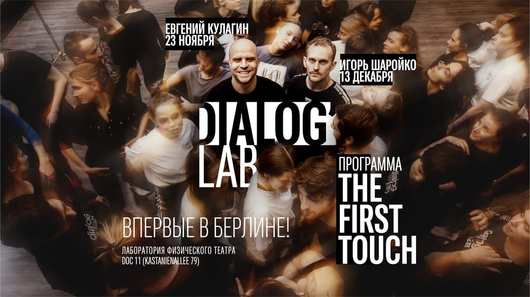 DialogLab запускает лабораторию физического театра в Берлине! Первая встреча состоит из двух пятичасовых субботних воркшопов. Каждый воркшоп - это возможность познакомиться с ведущими преподавателями лаборатории, окунуться в мир движения и физического театра, на практике прикоснуться к инструментам связывающим тело и сознание, как в жизни так и в сценическом действии. Программа лаборатории представляет собой телесные практики, классические театральные тренинги, танцевальный базис и ключевые инструменты физического театра. Фокус DialogLab строится на исследовании собственного тела, где каждый участник учится взаимодействовать со своим телом по-новому!