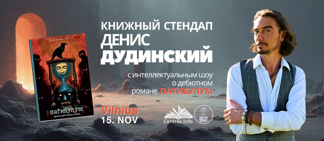🚀 Интеллектуальный трип, калейдоскоп эмоций и на десерт — уютный релакс среди своих. Субботним вечером 15 ноября телеведущий Денис Дудинский презентует дебютный роман «Патибулум» в Вильнюсе.