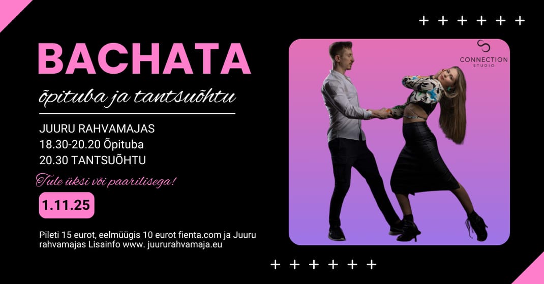 Juuru Rahvamajas 1. novembril Bachata õpituba ja tantsuõhtu.
