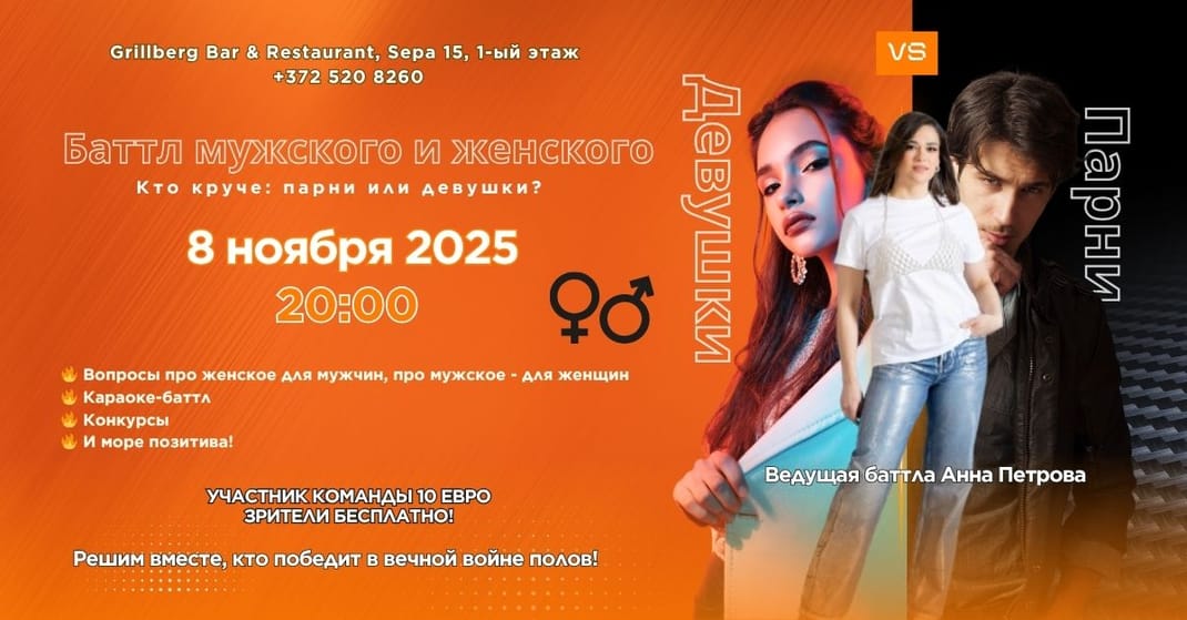 📍 Место: Grillberg Bar & Restaurant, Sepa 15, Narva (баттл состоится на первом этаже, поэтому места ограничены!)