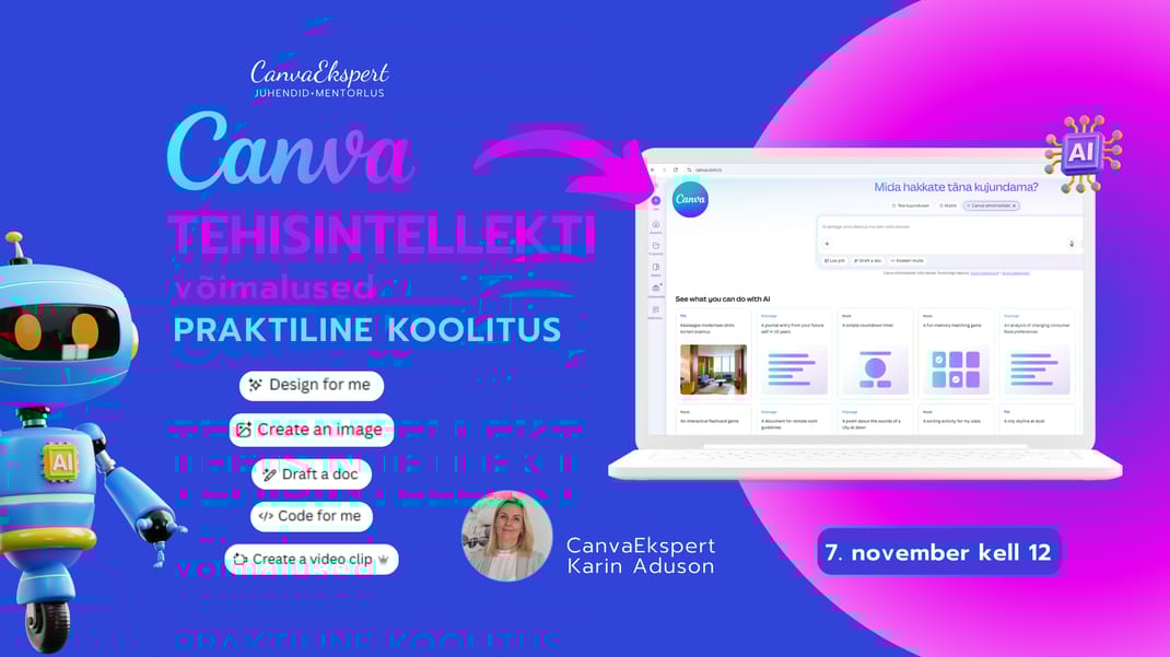 👩🏫 Juhendab Karin Aduson, Canva mentor ja koolitaja