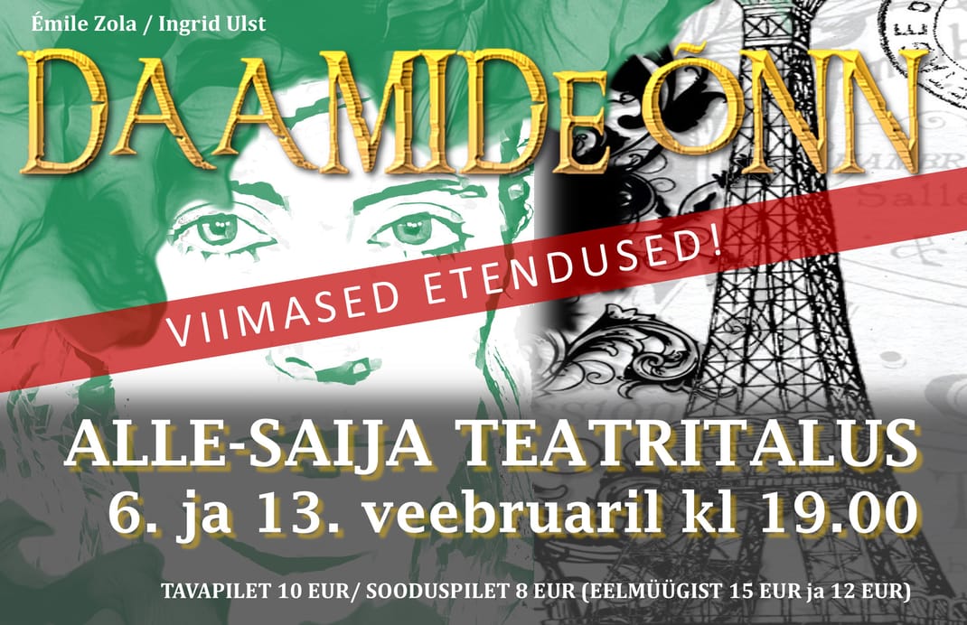 Autor: Émile Zola. Dramatiseerija, lavastaja ja kunstnik: Ingrid Ulst. Koreograaf: Andre Laine. Heli-ja valguskunstnik: Hanno Teppo. Laval: DORIS PAVLOV (Denise), ARGO PEETMAA (Octave Mouret), JAANIKA ULST (proua Aurélie), HEIKI LILL (Bouthemont), MERIKE TORM (Clara Prunaire), TIINA NEEVE (Marguerite Vadon), MEELIS VAHTRAMÄE (Baudu / Parun Hartmann), LIIVIA VAAS (Henriette Desforges), HELIN VILL (krahvinna de Boves), INGRID ULST (proua Marty).