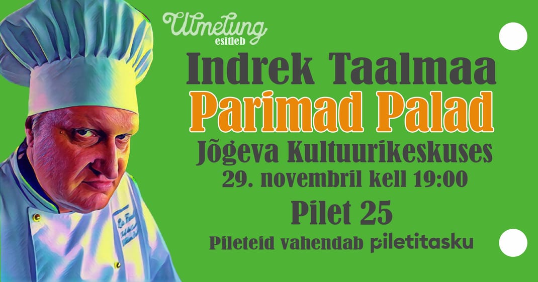 29. novembril kell 19.00 - Jõgeva Kultuurikeskuses - Indrek Taalmaa monoetendusega "Parimad Palad"