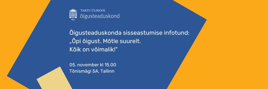 Infotunnis saad lähemalt teada, kuidas näeb välja õigusteaduse õppimine, miks seda üldse õppida ja millised näeksid välja sinu õpingud Tartu Ülikooli õigusteaduskonnas.
