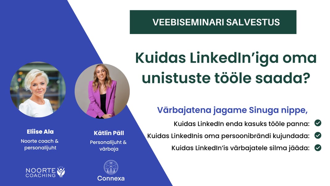 🌟 "Kuidas LinkedIn’iga oma unistuste tööle saada?" veebiseminari salvestus