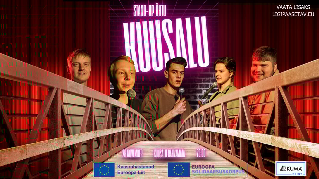 Kuusalu rahvamajas toimub 28. november Euroopa Liidu poolt kaasrahastatud projekti “Ligipääsetav stand-up” raames tasuta stand-up õhtu, mille eesmärk on viia kaasaegne huumor ka nendeni, kes tavaliselt suurtesse keskustesse kultuuri nautima ei satu. Kuusalu ja teie äge rahvamaja sobivad selleks ideaalselt – oodata on ainulaadset ja meeldejäävat õhtut!