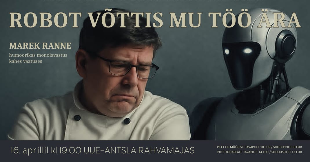 Margus on tavaline keskklassi mees, kelle elu pööratakse pea peale, kui tema töökoha kööki saabub uus töötaja – tehisintellektil põhinev robotkokk. See on lugu tööst ilma jäämisest, väärikuse otsimisest ja inimeseks jäämisest ajastul, kus masinad mitte ainult ei tee tööd, vaid võtavad ka ruumi meie hinges. Laval kulgeb Marguse monoloog läbi humoorikate ja valusate hetkede – argipäevastest olukordadest kuni sügava eksistentsiaalse kriisini. Ta räägib personalijuhiga, vaidle juhatajaga, meenutab tööraamatut ja püüab mõista, millal inimene muutus kuluks. Lugu on vaimukas, emotsionaalne ja kriipivalt ajakohane – peegeldus ühiskonnast, kus tehnoloogia edusammud pole enam ulme, vaid igapäevane reaalsus. Ja keset seda seisab Margus – üks mees, kellelt võeti töö, kuid mitte hääl.