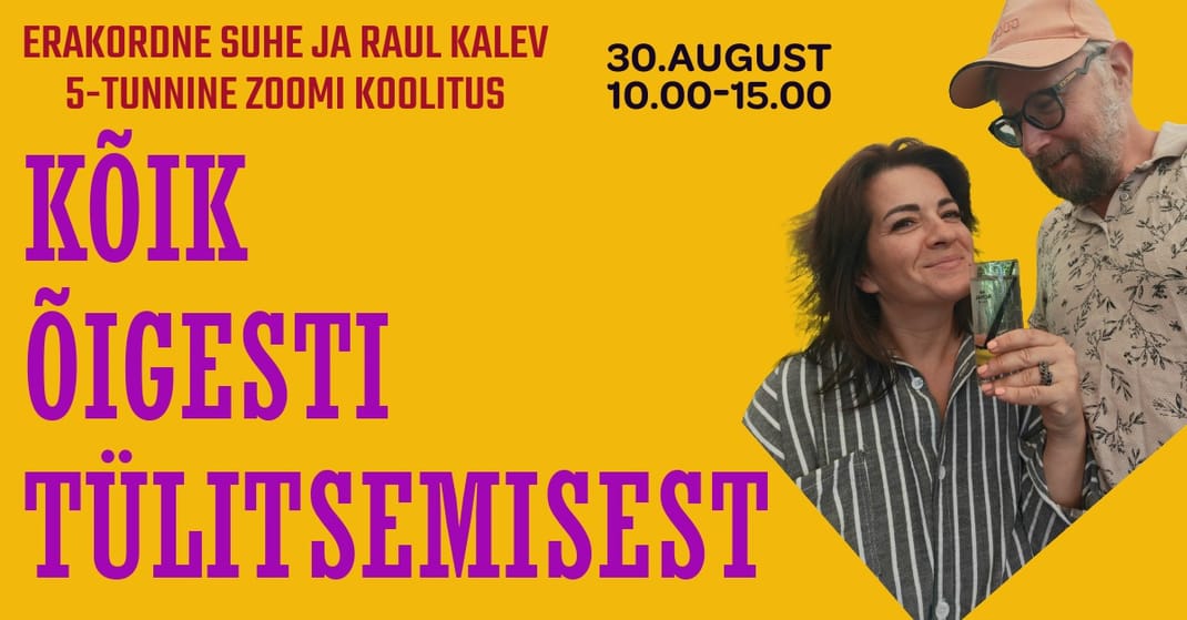 Koolituse käigus tutvume nii Gottmani legendaarsete „nelja ratsaniku“ kui ka David Schnarchi diferentseerumise kontseptsiooniga, mis aitab mõista, kuidas jääda endaks ka siis, kui partner sinuga ei nõustu. Harjutame, kuidas tulla toime hetkedel, mil üks osapool tahab rääkida ja teine tõmbub endasse, ning õpime looma ruumi, kus mõlemad saavad oma tunded ja vajadused nähtavaks teha.