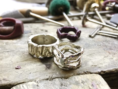 Если выберете восковую, то можно будет сделать кольцо любой формы! На мастер-классе вы изготавливаете форму из воска, и потом ювелир отливает ее в серебре или золоте. Так как все украшения уникальны, они весят тоже по-разному, поэтому металл не входит в стоимость. Ювелир взвешивает ваше украшение в конце занятия и тогда рассчитывает стоимость металла: как правило, в восковой технике доплата составляет 7-35 евро из расчета 2 евро за 1 г серебра.