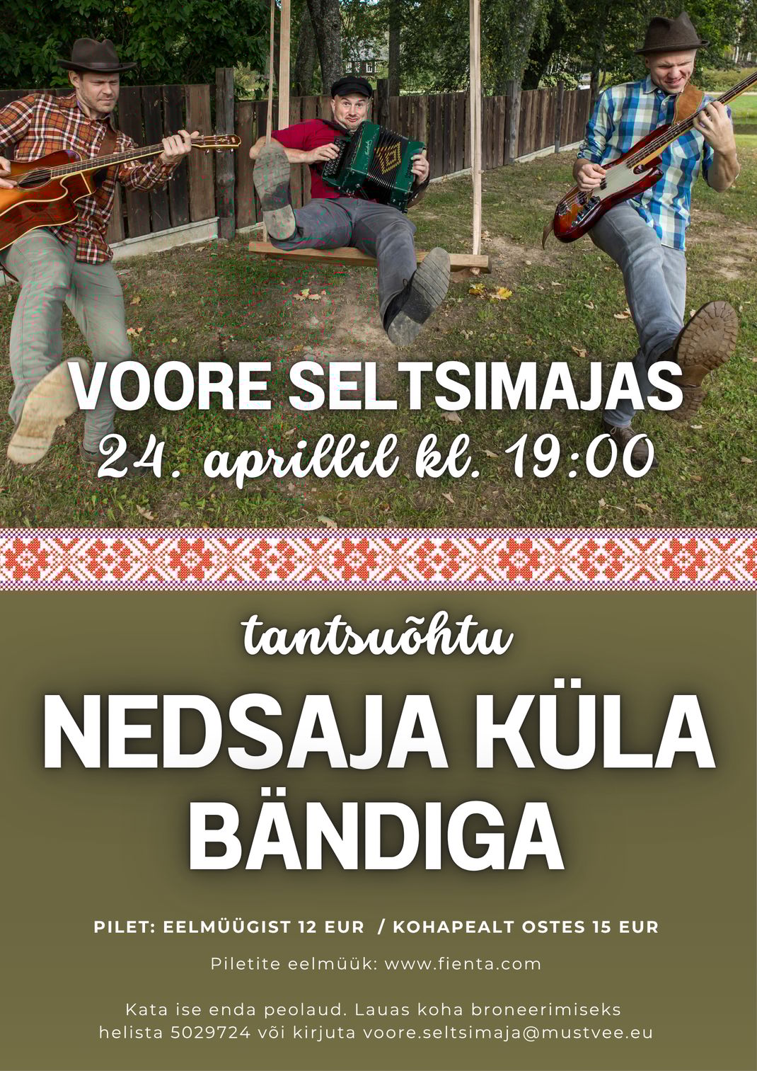 Voore Seltsimajas toimub 24. aprillil vägev tantsuõhtu - korralik tantsuküte noorte Setomaa külameeste moodi, kus tantsuks mängib ja laulab Nedsaja Küla Bänd. Tantsuõhtul osalejad saavad ise katta endale peolaua, andes oma soovist seltsimajale ette teada.