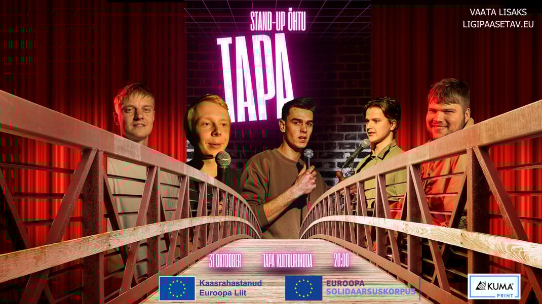 Tapa kultuurikojas toimub 31.oktoober Euroopa Liidu poolt kaasrahastatud projekti “Ligipääsetav stand-up” raames tasuta stand-up õhtu, mille eesmärk on viia kaasaegne huumor ka nendeni, kes tavaliselt suurtesse keskustesse kultuuri nautima ei satu. Tapa ja teie mõnus kultuurikoda sobivad selleks ideaalselt – oodata on ainulaadset ja meeldejäävat õhtut!