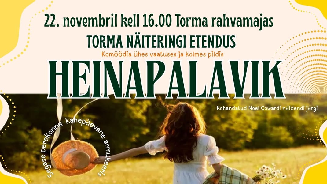 Ootame kõiki laupäeval, 22. novembril vaatama etendust "Heinapalavik".