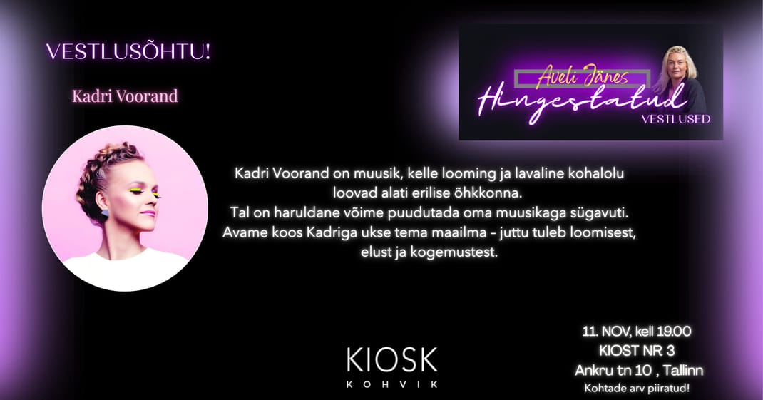 Avame koos Kadriga ukse tema maailma – juttu tuleb loomisest, elust ja kogemustest.