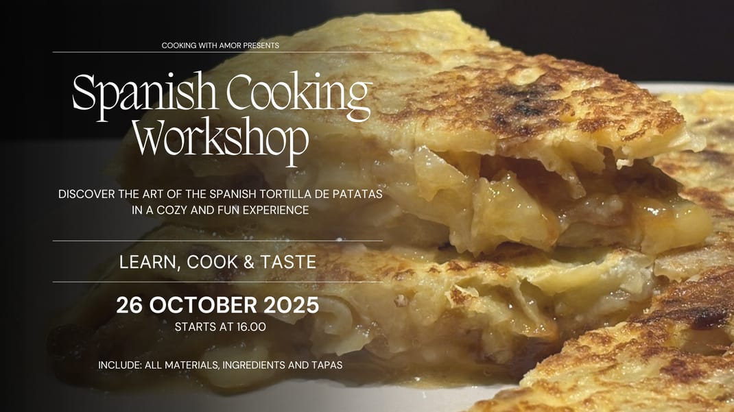 On October 26th, 2025, we invite you to the Spanish Cooking Workshop – Tortilla de Patatas, a culinary experience where you’ll learn how to prepare one of Spain’s most beloved recipes.