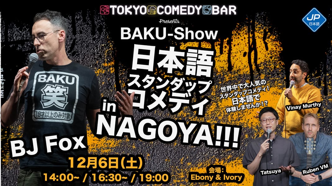 チケットは毎回完売必至!のバイリンガルコメディアンBJ Foxが、オーディエンスとの軽快なやり取りと知的なユーモアであなたを魅了します!