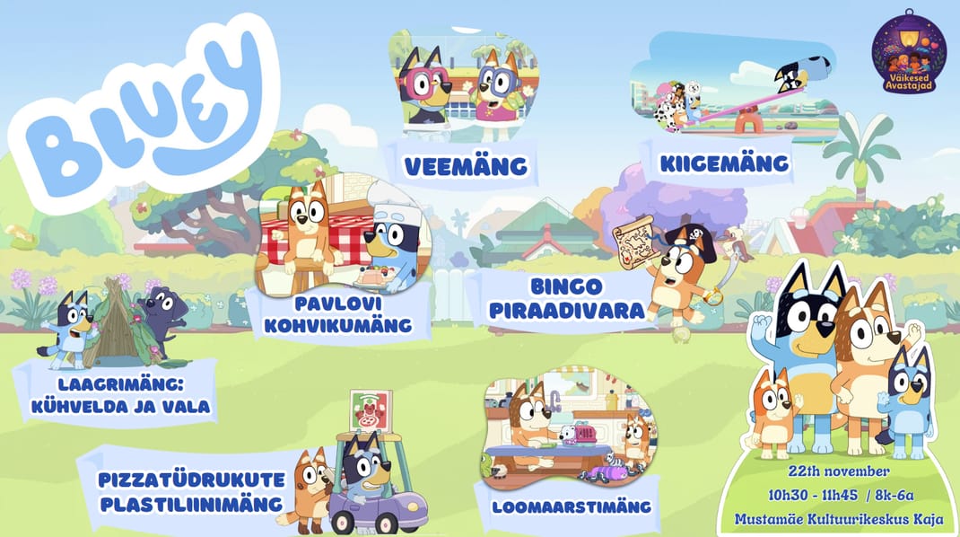 Valmistu põnevaks seikluseks Bluey maailmas! Meie temaatiline möllamise ja avastamise sessioon (messy play) on loodud käelise kogemuse pakkumiseks 6 kuu kuni 5 aasta vanustele lastele, et äratada uudishimu ja hoida need uudishimulikud käed tegevuses, täpselt nagu Bluey ja Bingo!