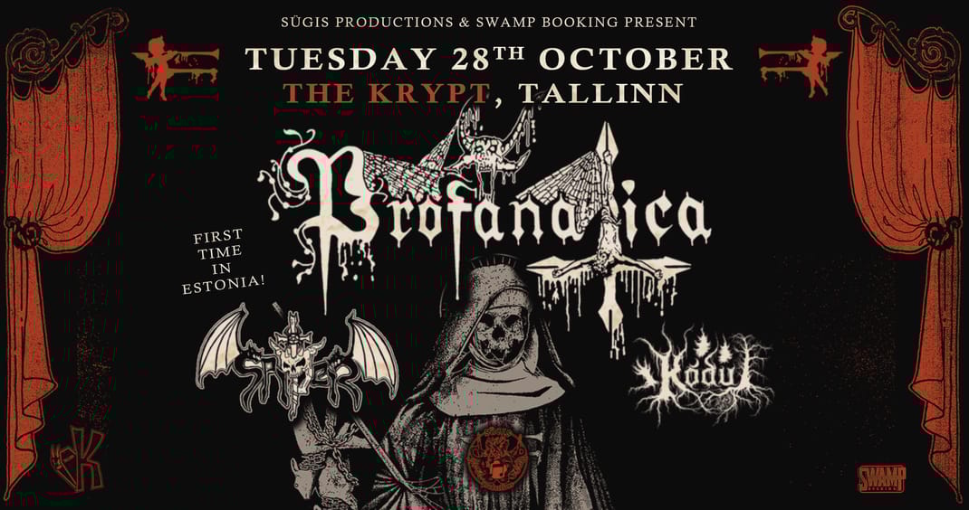 SΓΌgis Productions presents the Estonian debut of black metal legends PROFANATICA, bringing over three decades of blasphemy to The Krypt, Tallinn β€” joined by SPITER and KΓ•DU.
