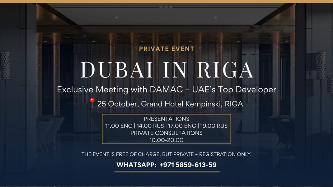 Крупнейший частный девелопер Дубая — DAMAC — приезжает в Ригу!