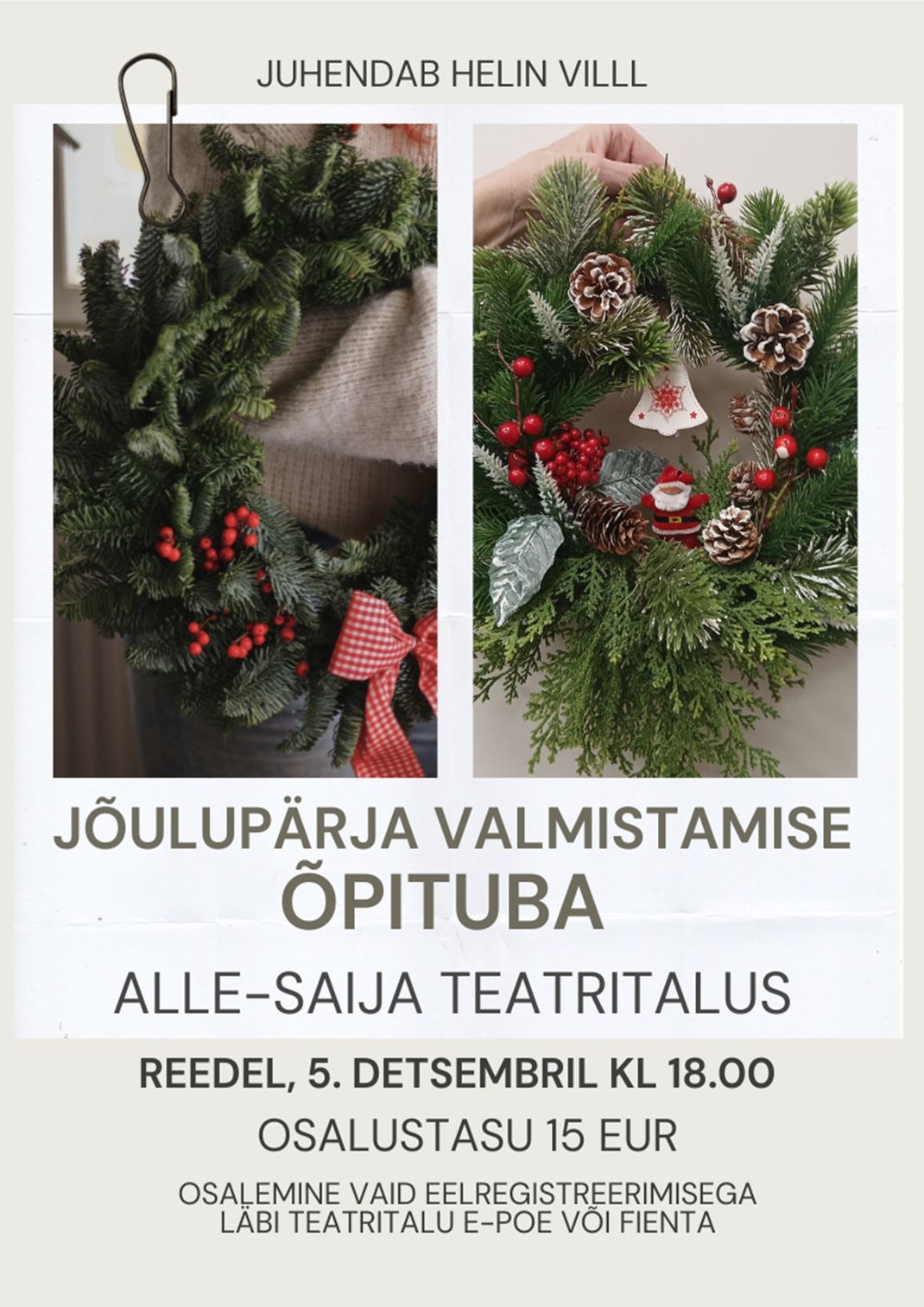 Alle-Saija Teatritalu ja Naha talu valmistuvad ka sel aastal jõuludeks ise oma kätega meisterdades! Sel aastal õpetame kõiki huvilisi jõulupärga valmistama. Võimalik on teha kunstmaterjalist pärg uksele, seinale või suurem lauaseade. Alates hommikust on avatud ka teatrikohvik, kus pere saab maiustada ja mõnusalt aega veeta, samal ajal, kui mõni pereliige pärga meisterdab.