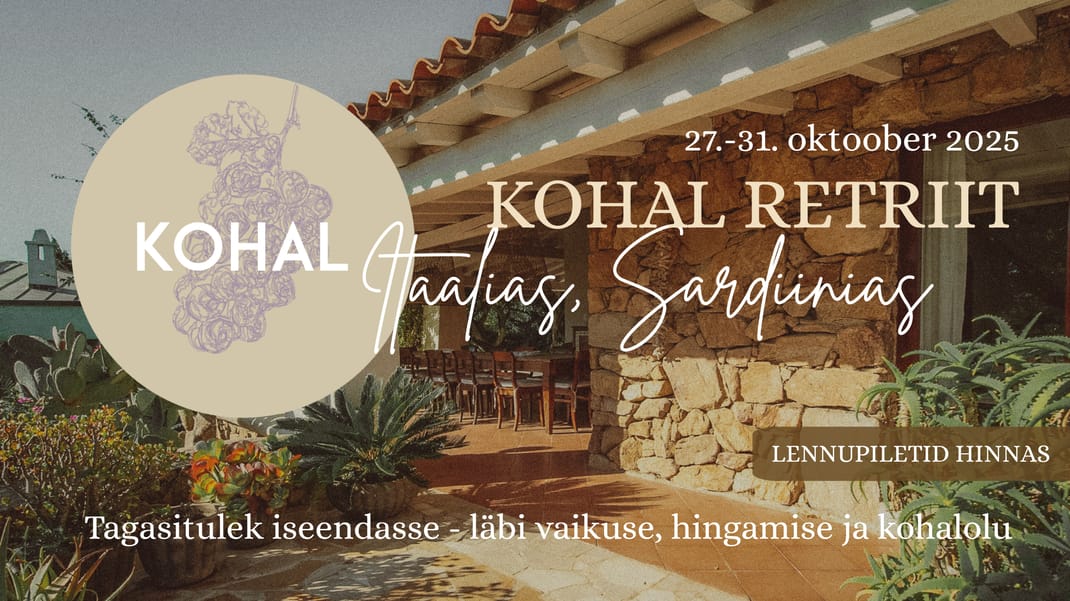 KOHAL retriit on loodud selleks, et naasta iseenda juurde. Vaikuses, liikumises ja kohalolus – et kogeda tõelist puhkust, mis toidab kogu olemust.