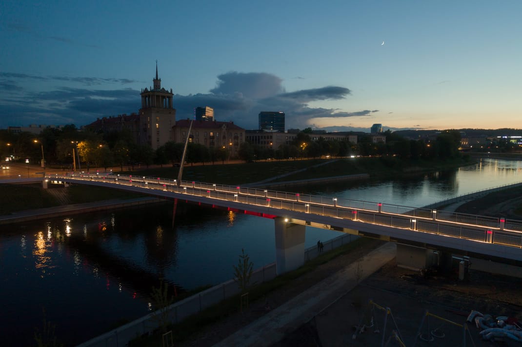 Tamsėjant Vilniaus vakarams, kviečiame į pasivaikščiojimą apšviestomis patiltėmis ir tiltais. Kiekvienas jų - vienintelis ir nepakartojamas tuo, kaip jungia krantus, techniniais ir meniniais sprendimais. Jų daugėjimas sutampa su miesto augimo ritmu. Jie įgalino miesto jungtis su pasauliu ir žmonių jungtis darbams ir draugystėms. Tiesiog techninio progreso, bendrystės ir plėtros simboliai.