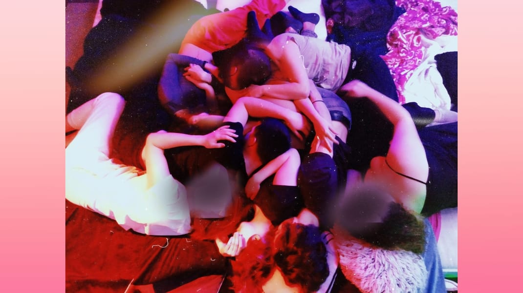 A Cuddle Party is a playful social event designed for adults to explore communication, consent, boundaries, and affection.
