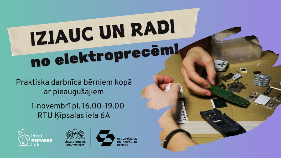 Šī ir tā iespēja iepazīties ar elektropreču darbības mehānismiem un radīt otro dzīvi elektropreču komponentēm! Piedalies IDEAL MISTAKES HUB darbnīcā, kur kopā ar RTU Dizaina fabrikas studentiem iepazīt kā strādā elektropreces un kā radoši tās pārvērst funkcionālā interjera priekšmetā!
