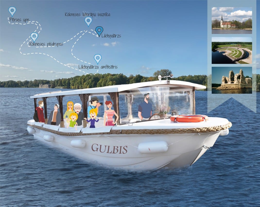Baudot braucienu ar kuģīti pa plašo likteņupi Daugavu, būs iespējams apskatīt tādus nozīmīgus kultūrvēstures objektus kā Likteņdārzu, Kokneses luterāņu baznīcu, Kokneses pilsdrupas un Pērses upi.