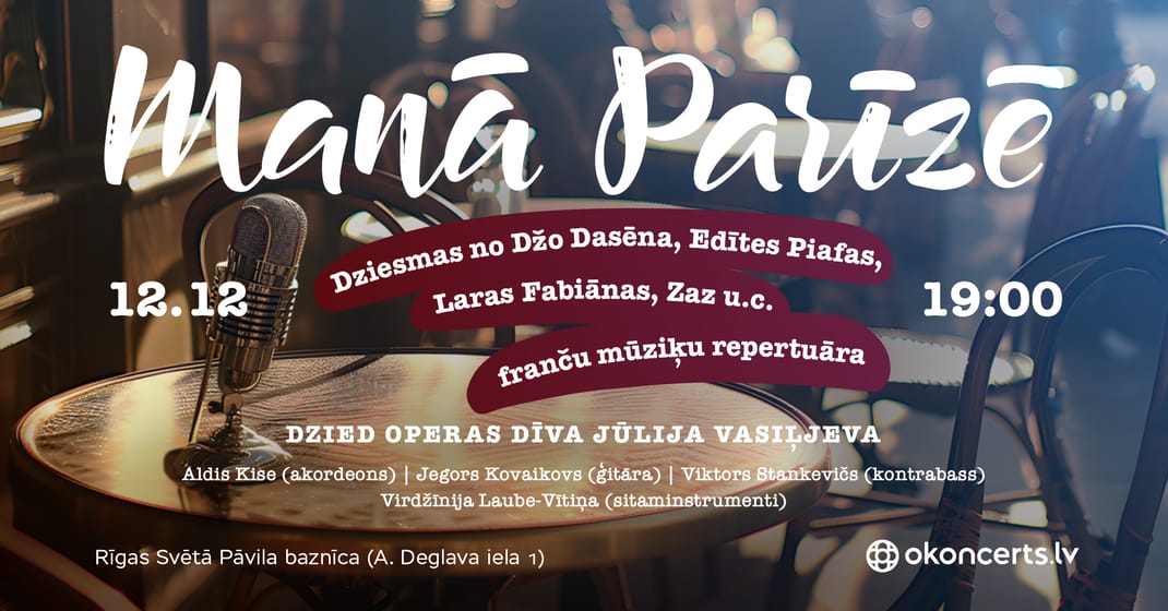 Manā Parīzē - muzikāls ceļojums romantikas galvaspilsētā. | 12.12.25 (19.00)