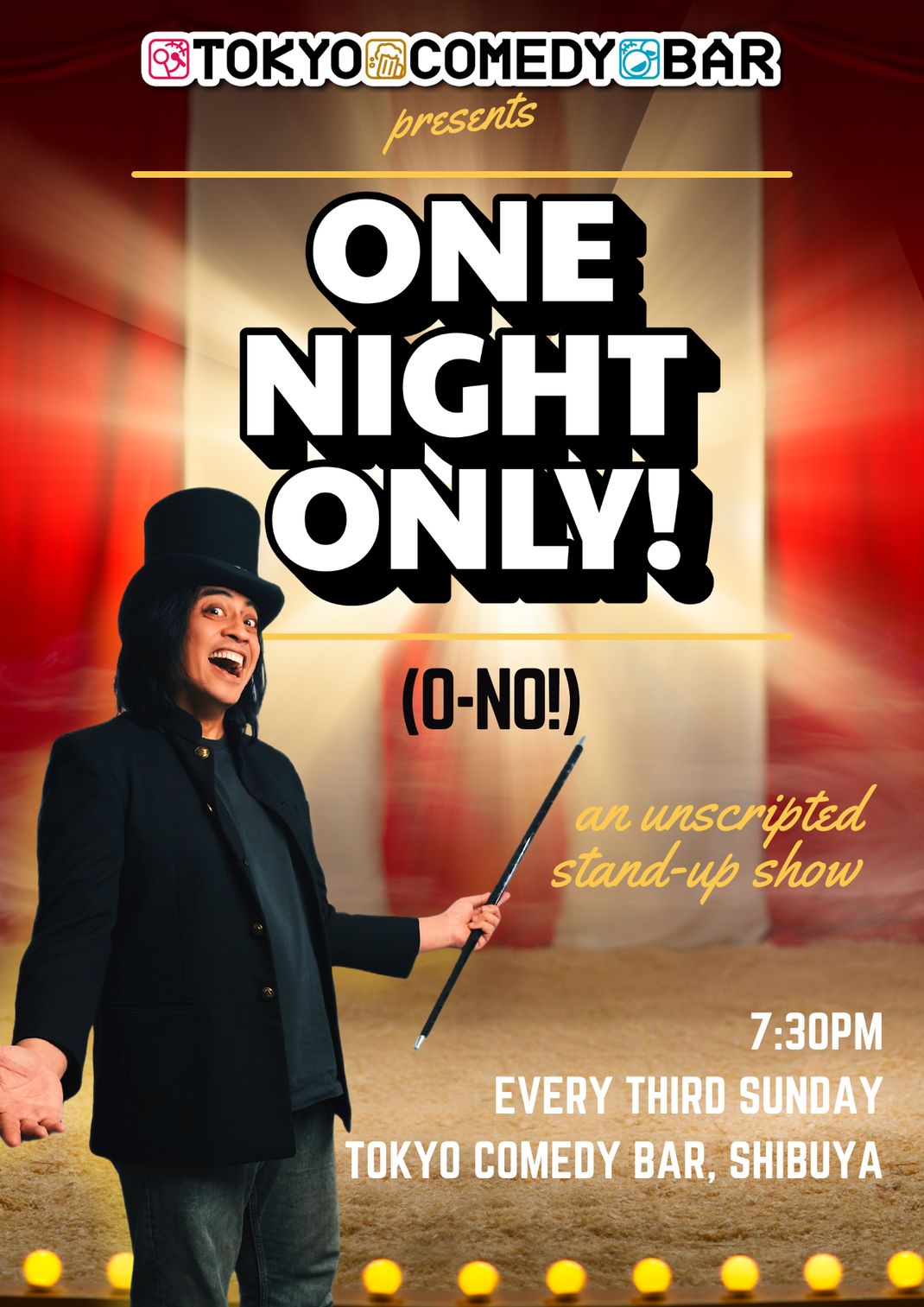 Brand-new comedy delivered by Tokyo's top comedians - so new that even the comedians won't know what they'll be talking about until they get up on stage! The topics are displayed on screen after they go on stage, and the comedians have to then make it all up on the spot.