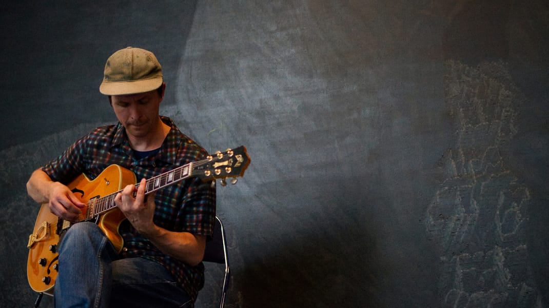 Guitarist Topias Tiheäsalo performs versions of compositions he himself calls 'free jazz ballads.' His set list features a selection of pieces whose composers range from John Coltrane to Duke Ellington, and from Don Cherry to Albert Ayler. He seeks to uncover the essence of these works through reduction and simplification, resulting in almost skeletal interpretations that nevertheless remain vividly alive in the moment. In addition to his own compositions, Tiheäsalo places the main emphasis on improvisation created within a very open framework. At the centre are tone, sound, atmosphere, and also fleeting silences.