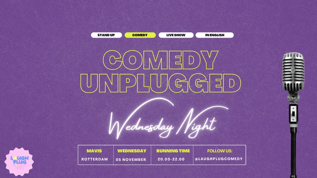 Follow us on Instagram: @laughplugcomedy and Facebook: LaughPlug Comedy, to stay updated with all the latest for this event and other shows all over Rotterdam!