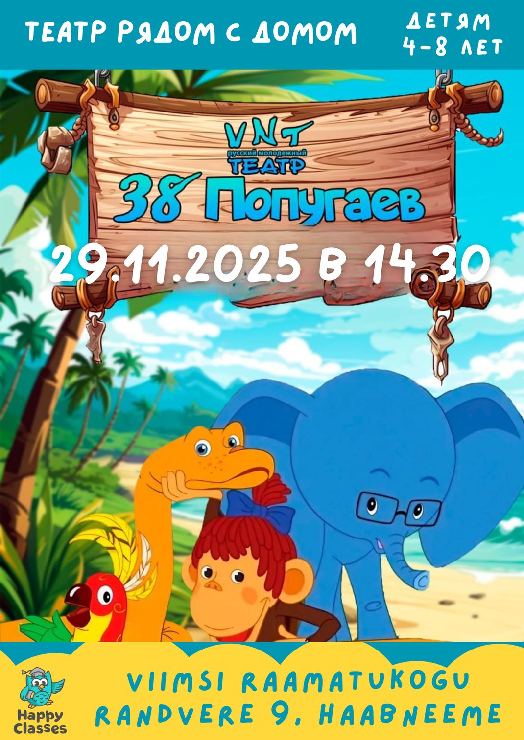 Добрый и веселый спектакль по пьесе Григория Остера о забавных приключениях четырёх друзей — болтливой Мартышки, застенчивого Слонёнка, эксцентричного Попугая и задумчивого Удава. Продолжительность спектакля - 40 мин.