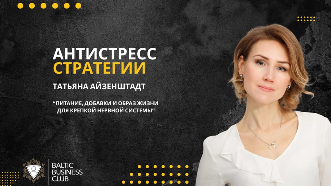 5 ноября в 18:00 Baltic Business Club приглашает на онлайн-встречу с Татьяной Айзенштадт — нутрициологом и health-коучем, которая помогает предпринимателям выстраивать устойчивый и ресурсный образ жизни без потери эффективности.