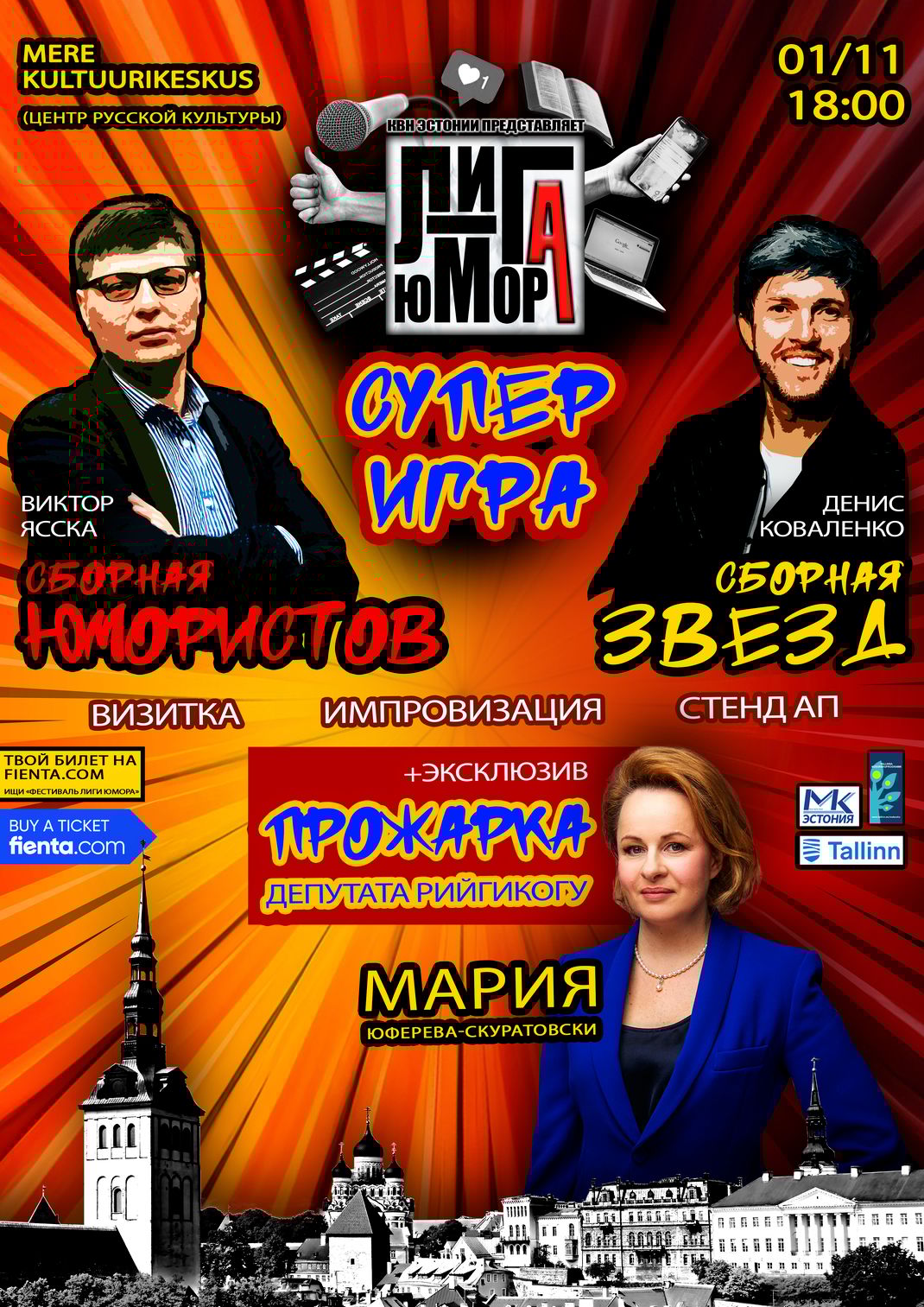 🔥 И главное — эксклюзив вечера: прожарка депутата Рийгикогу Марии Юферевой-Скуратовски!