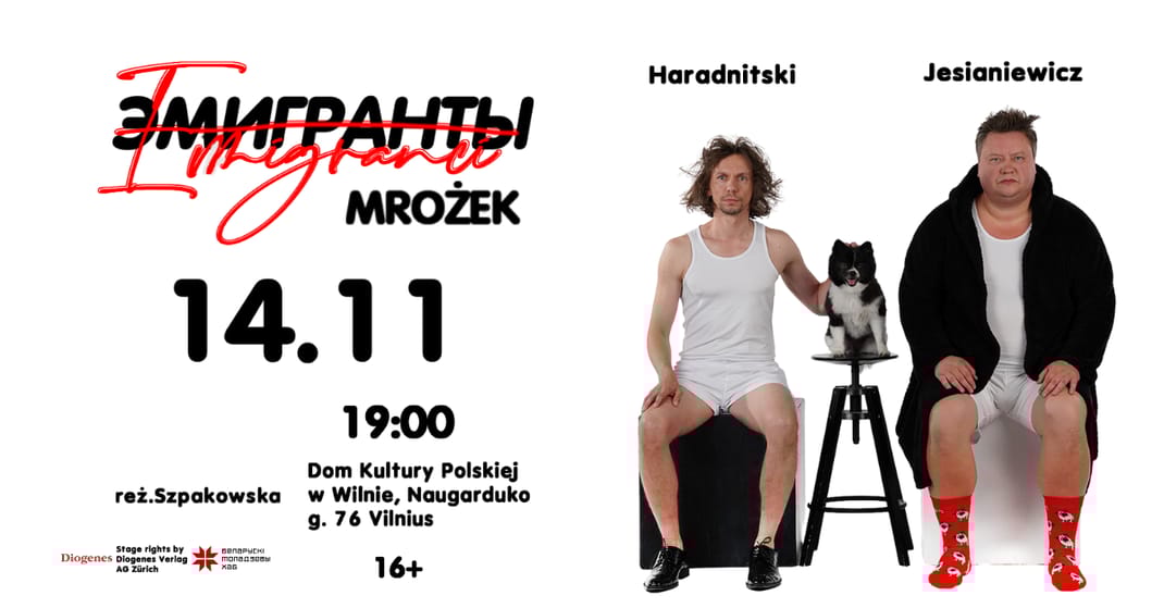 Спектакль па п'есе Славаміра Мрожака "ЭМІГРАНТЫ" раскрые глыбіню і абсурднасць нашых перажыванняў. Дасць магчымасць убачыць знаёмыя рысы ў героях. Пасмяяцца і паплакаць разам з імі над нашым такім дзіўным жыццём...