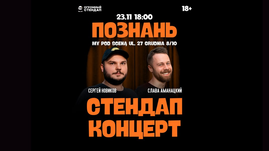 Наконец-то мы в Познани спустя почти 2 года! Самые опытные и смешные комики международного стендап-клуба Огромный Стендап с наилучшими шутками уже в воскресенье 23.11! Не пропусти!