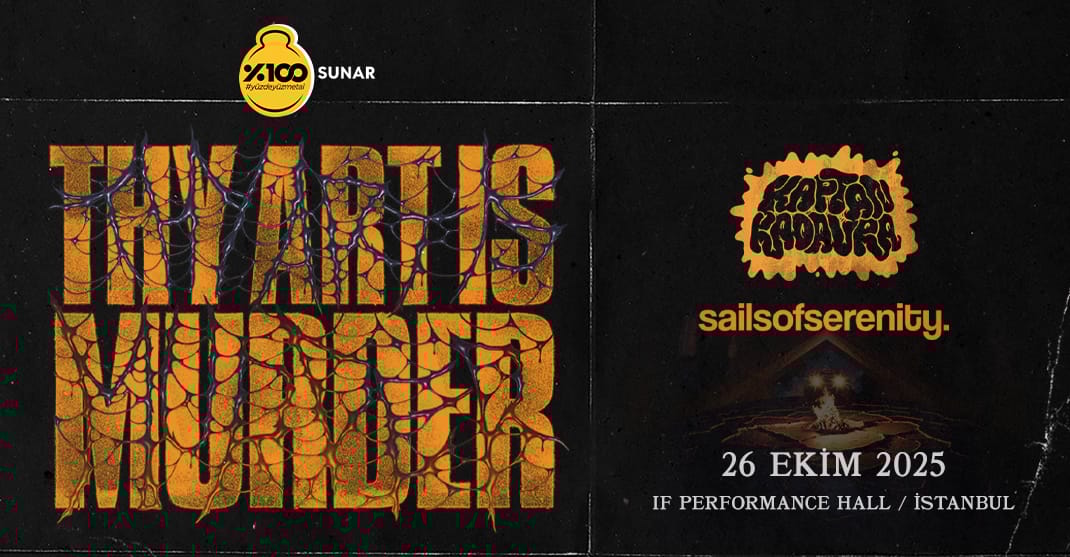 Avustralya’nın ekstrem metal sahnesinin önde gelen ismi Thy Art Is Murder, %100 Metal kapsamında İstanbul’da unutulmaz bir gece için sahne alıyor! Yeraltı sahnesinden hızla yükselerek dünya çapında adını duyuran grup, karanlık death metal tınılarını keskin sosyal eleştirilerle harmanlayarak dinleyicileri büyülüyor. Download, Wacken, Graspop, Hellfest ve Summer Breeze gibi dev festivallerde boy gösteren Thy Art Is Murder, Cannibal Corpse, Slayer, Kreator ve Parkway Drive gibi türün devleriyle aynı sahneyi paylaştı. Avustralya’da iki kez ARIA ödülüne aday gösterilen grup, Dear Desolation (2017) albümüyle ARIA Top 40’ta 5 numaraya yerleşerek ülkesinde tarih yazdı.